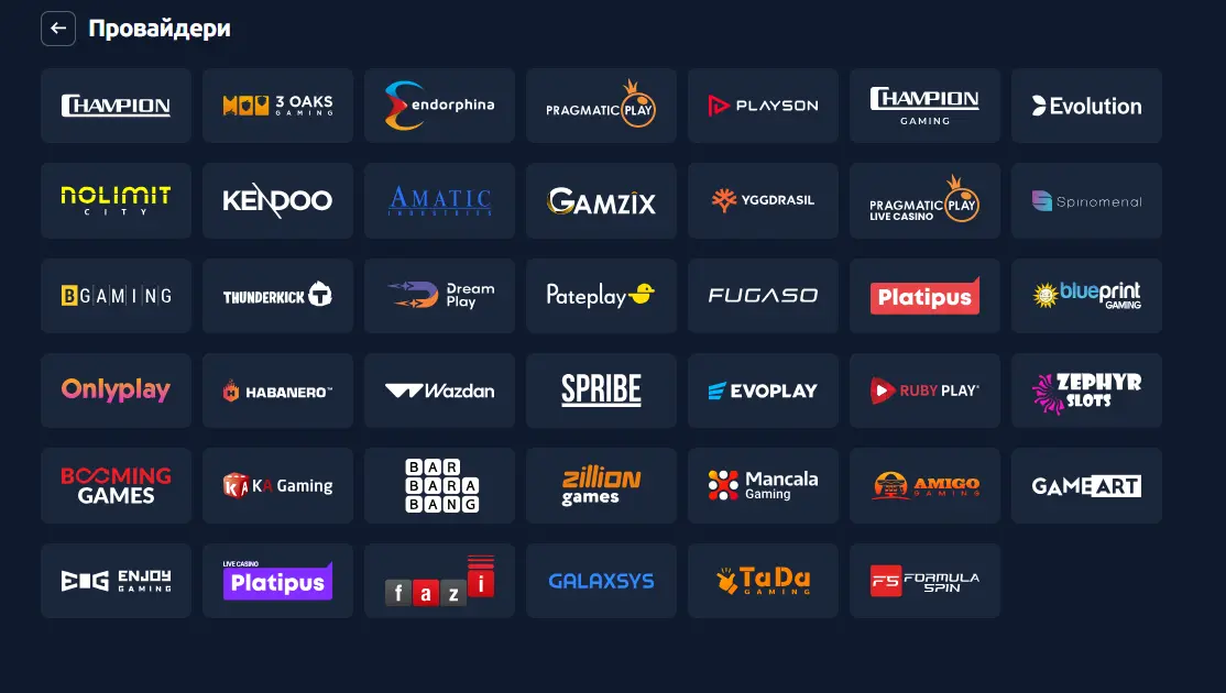 Провайдери ігрового контенту та технологічна база казино Чемпіон клаб